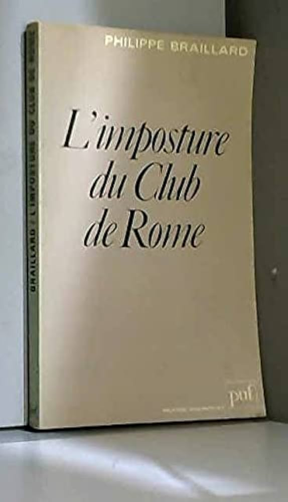 Dans un ouvrage incisif de 1982 aujourd’hui introuvable, L’imposture du club de Rome, le politologue suisse Philippe Braillard démontre la duplicité de ce club d’industriels et dénonce son catastrophisme outrancier qui, sous couvert de neutralité scientifique autour des limites de la croissance, œuvre à légitimer une vision du monde orientée vers une gouvernance globale technocratique, en déplaçant le débat politique vers le terrain de la gestion des ressources à l’échelle mondiale.