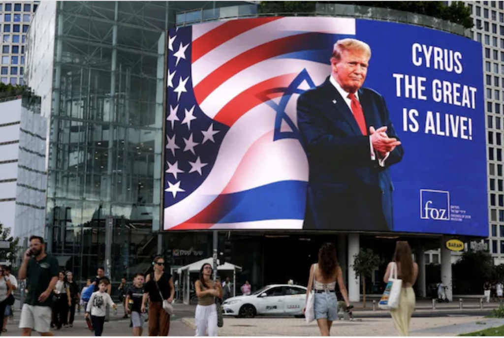 Trump est désigné par la gouvernance actuelle pour réaliser un parcours similaire. On note les exploits suivants: la signature des accords d’Abraham pour le transfert de l’ambassade américaine de Tel Aviv à Jérusalem, la reconnaissance de l’extension du territoire sur les hauteurs de Golan, la Judée et la Samarie, le financement continu de la guerre à Gaza et les projets d’y établir un paradis doré, une fois que le territoire sera « nettoyé » de sa population. La ‘mini victoire’ contre l’Iran n’a sans doute pas convaincu, mais a permis de rester fidèle au scénario et de préparer sa suite, car l’agenda reste mondial.